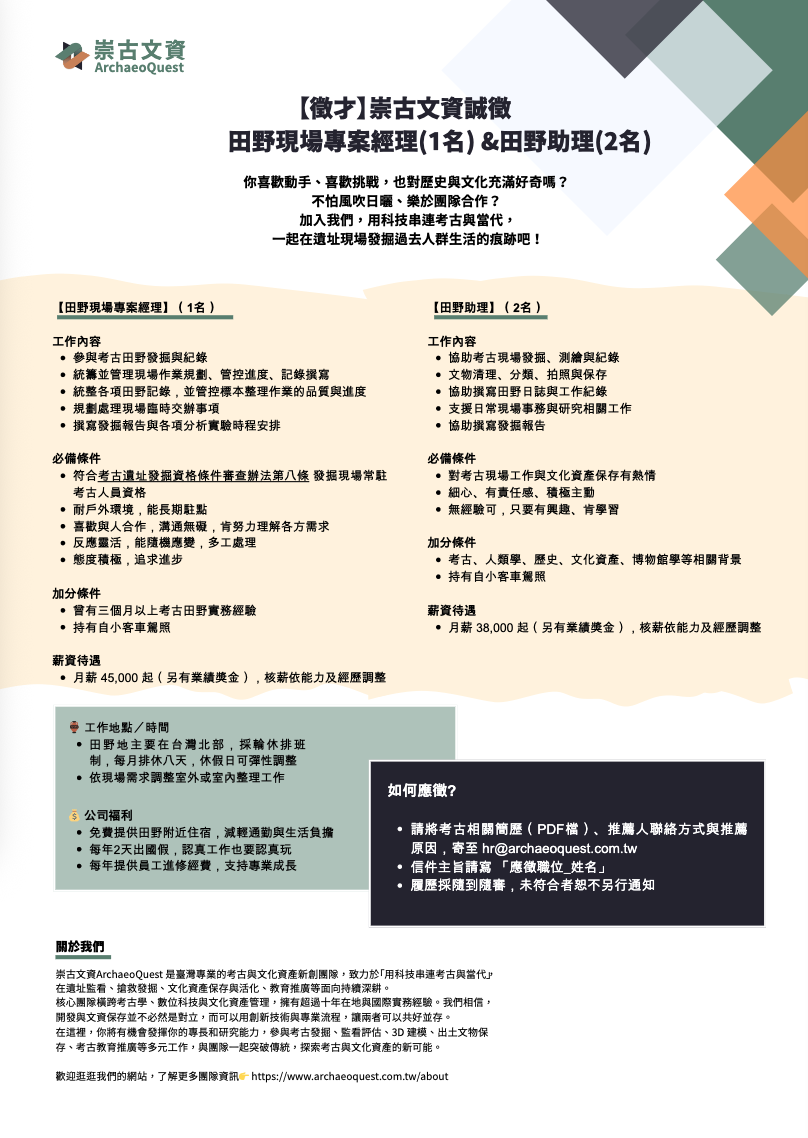 更多徵才資訊請詳見崇古文資顧問有限公司