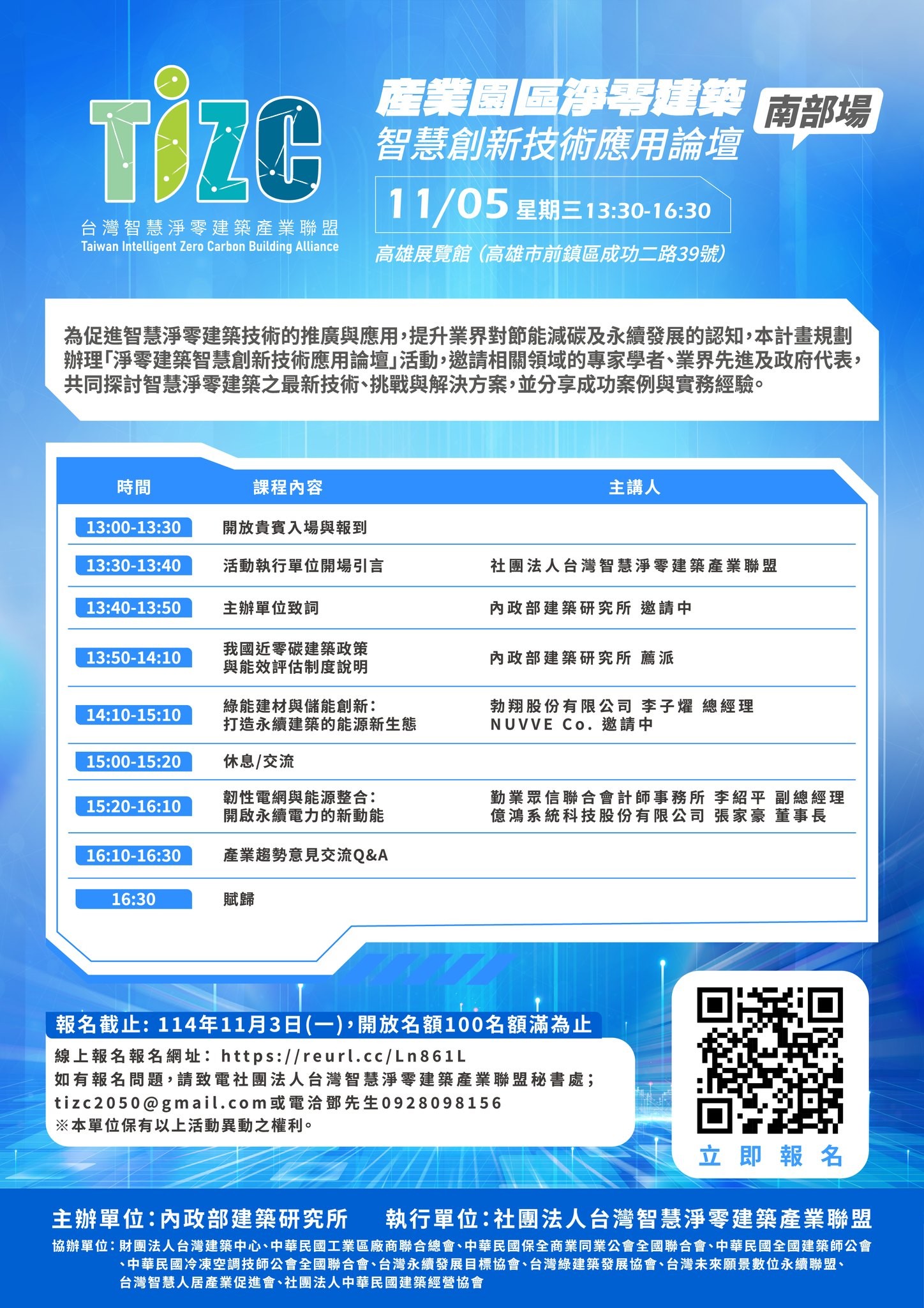 114年度「產業園區淨零建築智慧創新技術應用論壇」南部場歡迎參加!