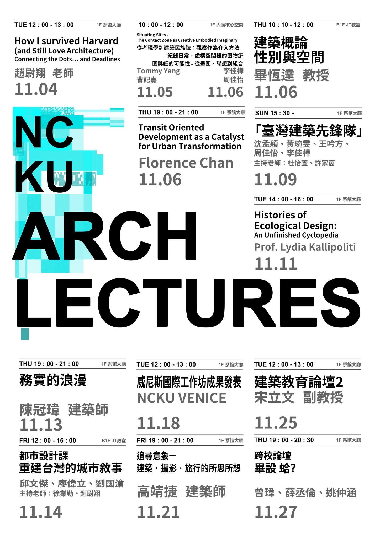 十一月,我們將迎來一連串多元且深刻的建築講座。